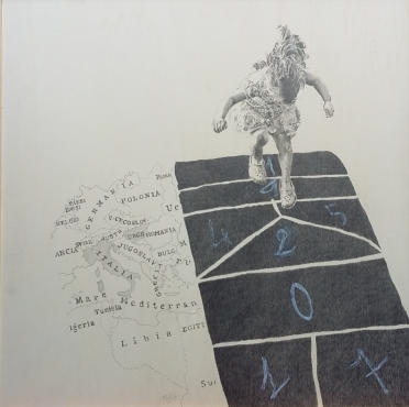 «Saltando sui confini», grafite su tavola, 80x80